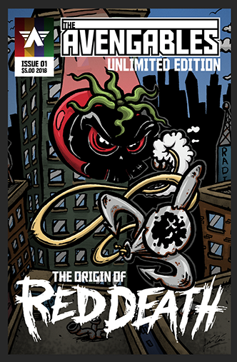 The first comic book was released in 2017, focusing on a pivotal moment in Thom, AKA Red Death's life prior to joining The Avengables. The black and white Pulp Edition was limited to 100 copies and premiered at Wizard World Madison in 2017. The full color Unlimited Edition premieres at San Diego Comic Con in 2018. Jeremiah Zeier created the artwork with India ink, a brush, and Adobe Photoshop. Emmalee Pearson wrote it using her hands. Multiple issue origin stories for each member of the team are planned.